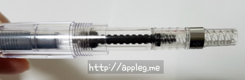 ① 컨버터를 만년필에 끼우고 돌려서 스크류가 아래까지 내려오도록 함.